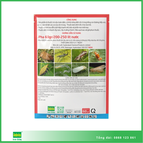 - Sản phẩm là thuốc trừ sâu toàn diện, có khả năng diệt côn trùng bằng con đường tiếp xúc, vị độc, làm tê liệt các cơ của côn trùng. Thuốc bám dính tốt, ít bị rửa trôi.